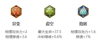 1、铭文推荐:红色异变+绿色虚空+蓝色隐匿