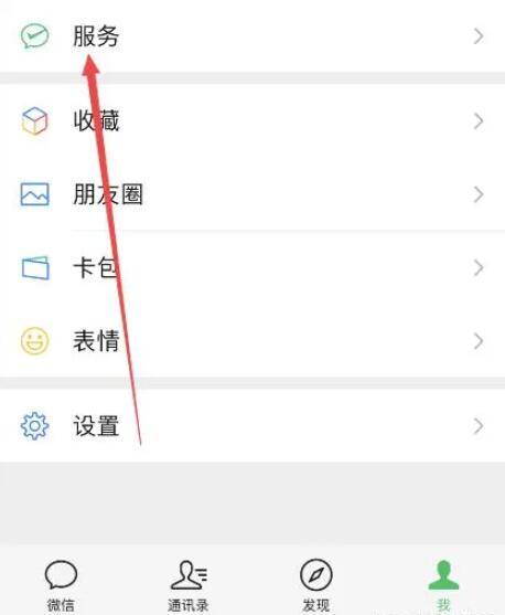1、首先点击微信右下的我,在点击里面的服务选项。