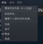 这一种方式更加简单,但是会丧失互动性,我们直接在最顶栏中的好友选项中选择“隐身”,直接隐藏自己的状态,这样好友就无法得知你正在游玩的游戏了。