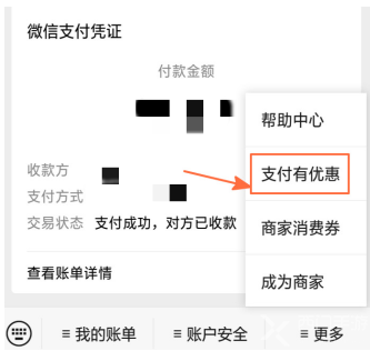 1、使用微信付款,一般会弹出一个微信支付凭证,点击右下角更多,弹出的页面点击支付有优惠。