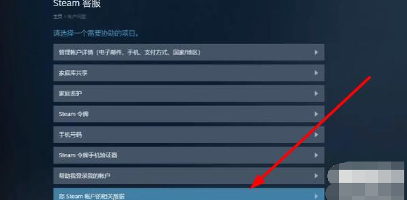 2、我们在steam客服中,找最底下的steam账户相关数据。