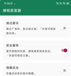 2、只需要点击更多,然后点击哆啦百宝袋,然后开启前台服务。