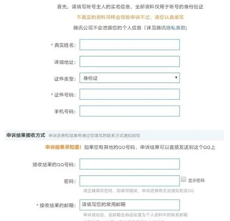 2、将被盗qq实名信息全部填写上去,在写一个能够收到验证码qq邮箱。