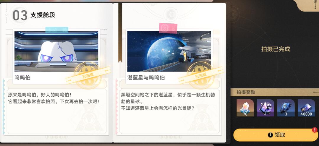 在崩坏星穹铁道星旅寻影第三天攻略中,玩家需要找到呜呜伯和湛蓝星进行拍摄,这两个都可以在支援仓段中找到,每一个都是十分的巨大显眼,很容易就可以让玩家看到,下面小编就为大家带来了崩坏星穹铁道星旅寻影第三天图文攻略,希望对大家有所帮助。