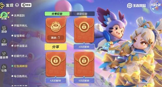 2、进入活动后玩家需要分享4个红包需要好友点击领取,好友向玩家分享2个红包玩家领取即可。