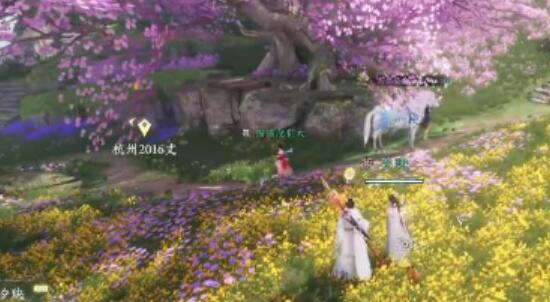 1、首先玩家需要来到杭州找到npc小桃枝,在她面前和情缘插旗切磋。