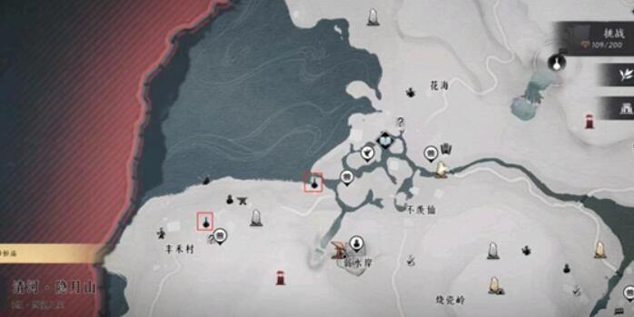 1、在隐月山的右边和善妙洲的右下角分别有一个。