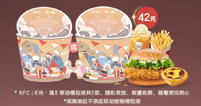 1、套餐的价格为42元,有着两款联动桶包装可以随机获得。