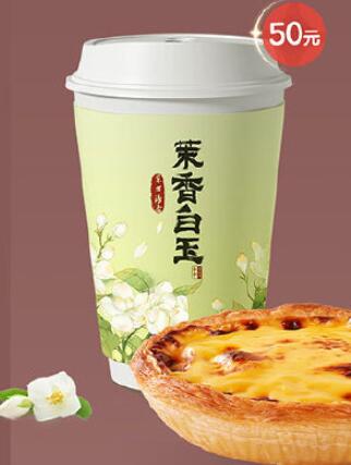 1、套餐的价格为50元,可以获得一杯饮料和一份蛋挞。