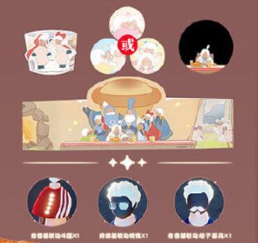 2、周边上将获得兑换码、杯套、随机徽章一个、温感杯垫和定制蛋挞封。