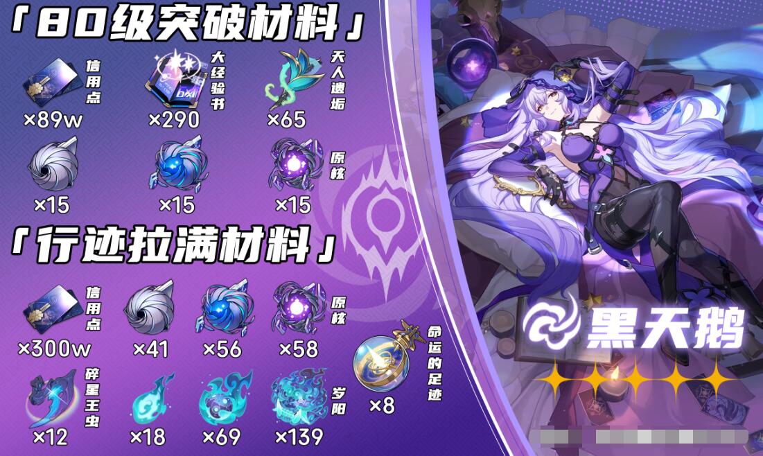 以上就是小编为大家带来的崩坏星穹铁道黑天鹅突破材料介绍,玩家可以提前收集对应的材料等待角色,更多崩坏星穹铁道相关内容敬请关注本网站。