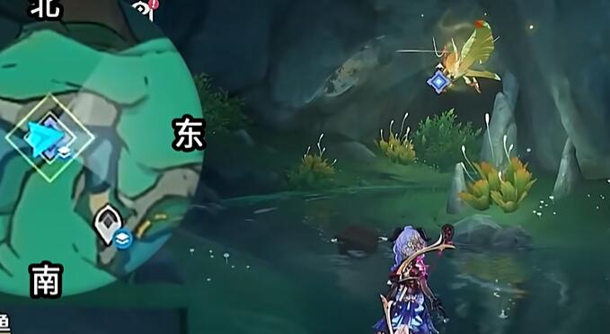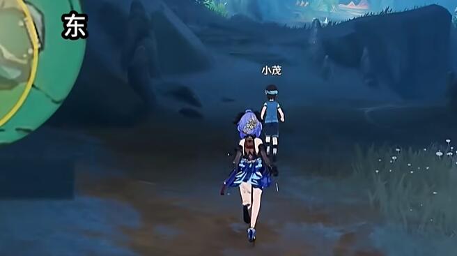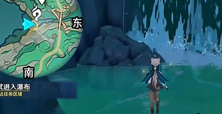 2、去到瀑布的下方的石头,即可接取任务。