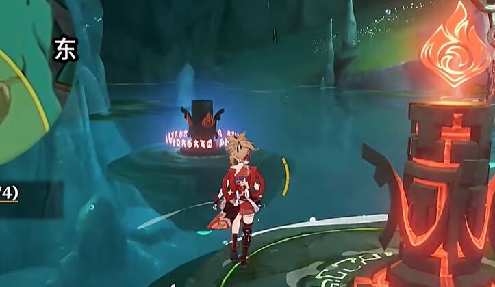 11、树的后方有着石龛,需要点亮炉子,先去到南边的炉子,对着北边的炉子按T。