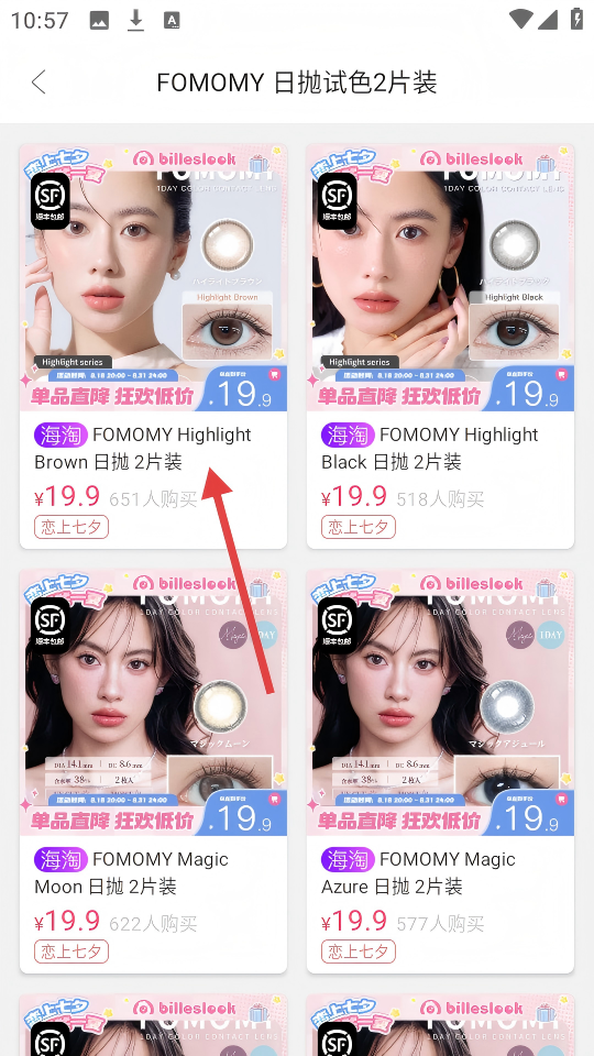 3、在FOMOMY日抛试色2片装页面,选择【FOMOMYHighlightBrown日抛2片装】商品。