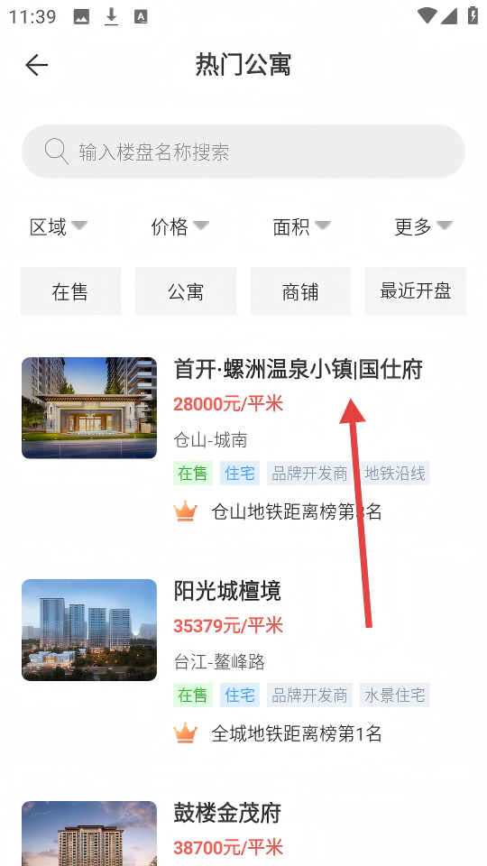 2、在热门公寓列表里,选择【首开・螺洲温泉小镇|国仕府】楼盘查看详情。