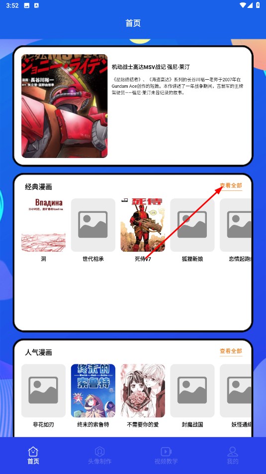 1、在首页点击“经典漫画”栏目的【查看全部-按钮】,进入经典漫画列表界面。