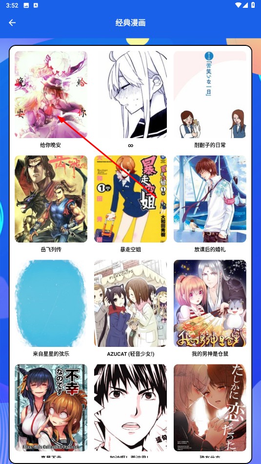 2、在经典漫画列表,点击目标漫画“给你晚安”,进入漫画详情页。