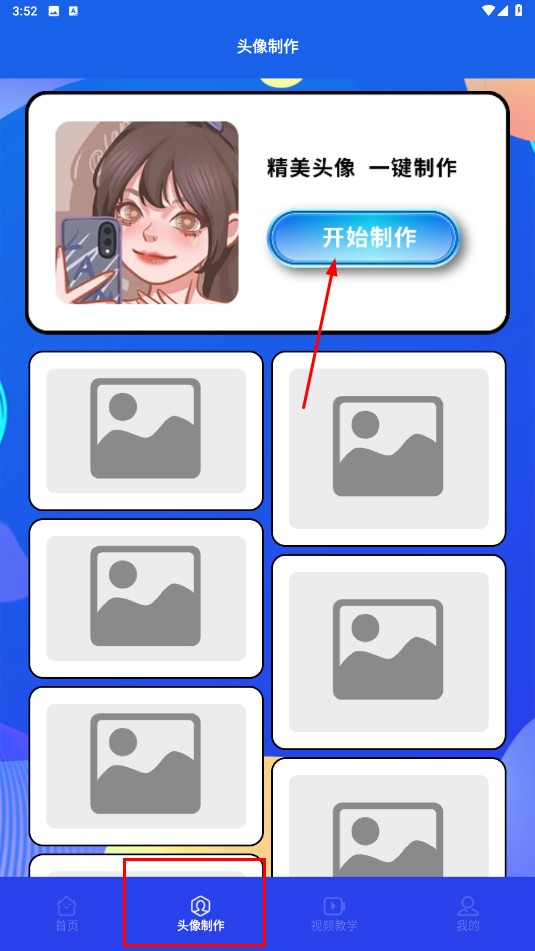 4、点击底部【头像制作-按钮】,进入头像制作界面,点击【开始制作-按钮】,可进行精美头像的制作操作。