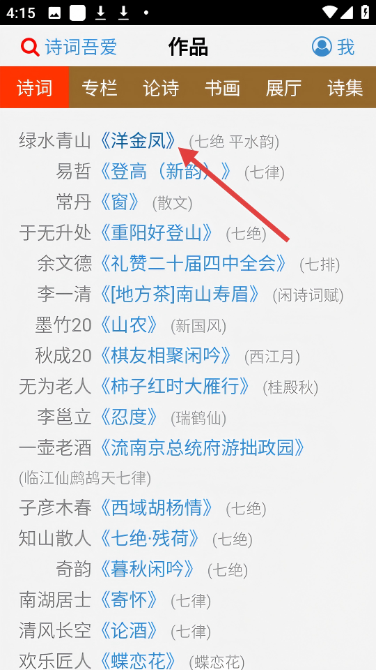 2、在作品页面点击【洋金凤】可查看该诗词详情。