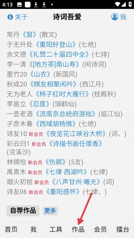 3、开设诗词擂台赛板块,用户可参与其中与全球诗友比拼诗词创作能力,以赛事为纽带增进交流,在竞争中提升诗词创作水平。