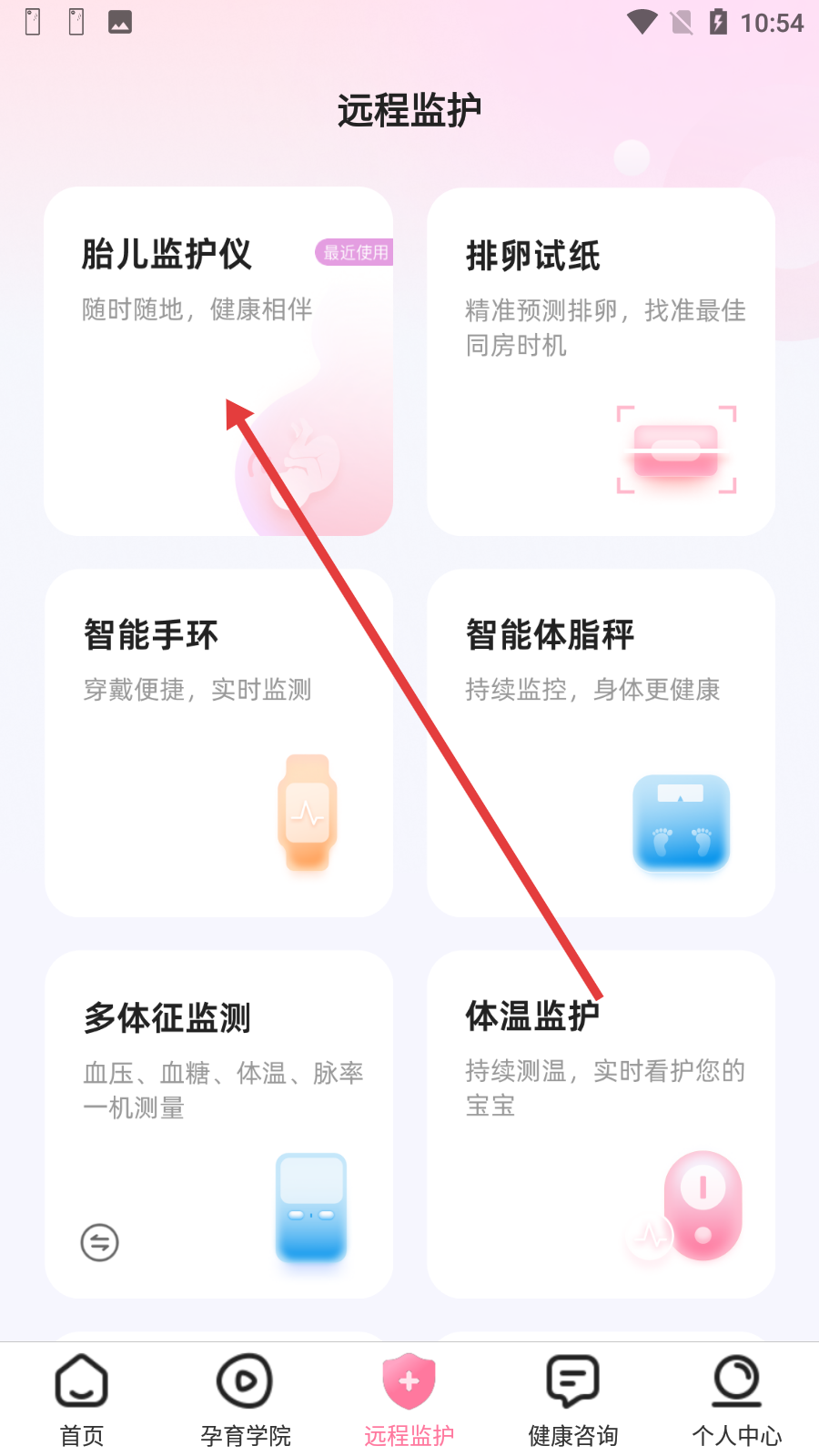 2、在远程监护列表中,点击【胎儿监护仪】选项。