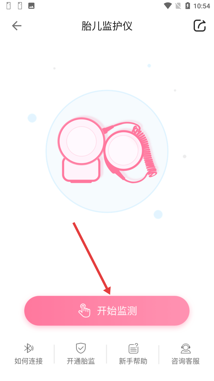 3、在胎儿监护仪页面,点击【开始监测】按钮。