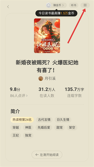 2、在书籍详情页,点击右上角的菜单按钮,展开操作选项。