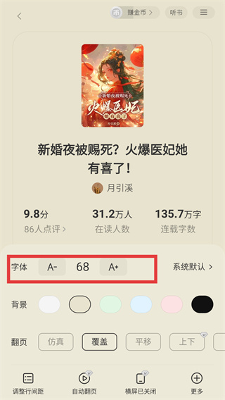 4、在阅读设置页面,可通过【A-】【A+】按钮调整字体大小。