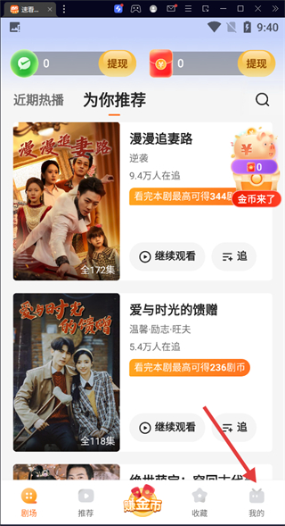 1、在看剧坊的“为你推荐”页面,点击底部的【我的】按钮,进入个人中心页面。