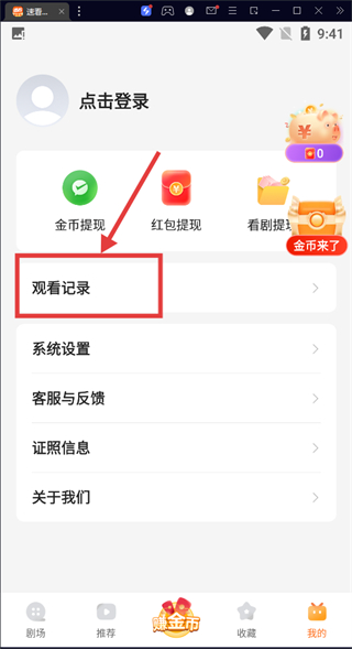 2、在个人中心页面,找到并点击【观看记录】选项,进入观看记录的列表页面。