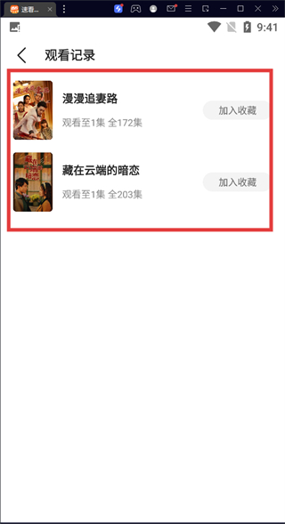 3、进入观看记录页面后,可查看过往观看过的剧集,以及对应的观看进度信息。