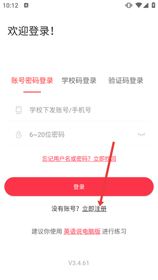 2、在登录界面点击【立即注册】选项,进入学校下发账号的确认页面。