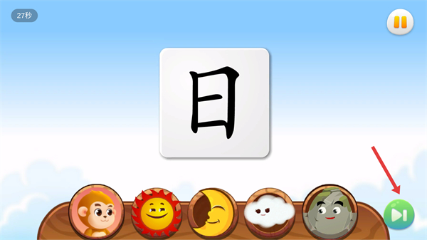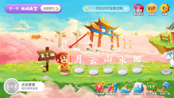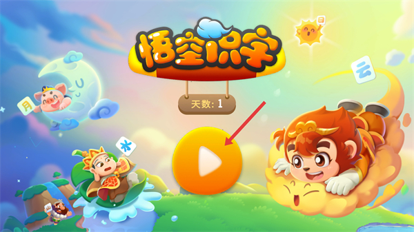 1、在【悟空识字】启动页面,点击中间的播放按钮,进入关卡选择界面,开启识字学习流程。