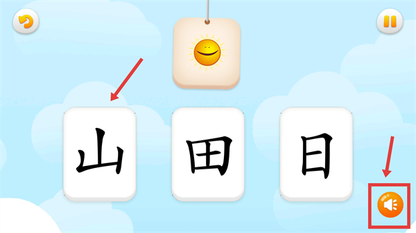 4、在字与形象的匹配环节,选择对应【日】字,点击发音按钮播放读音,辅助完成本次识字练习。
