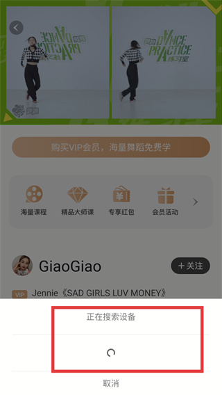 4、等待系统完成投屏设备搜索,后续可选择匹配的设备,完成舞蹈课程内容的投屏播放操作。