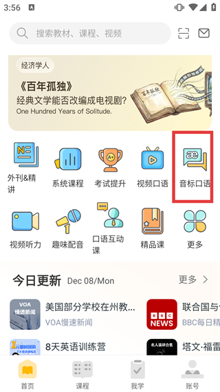 1、在应用首页,点击【音标口语】功能图标,进入音标与口语相关的课程选择页面。