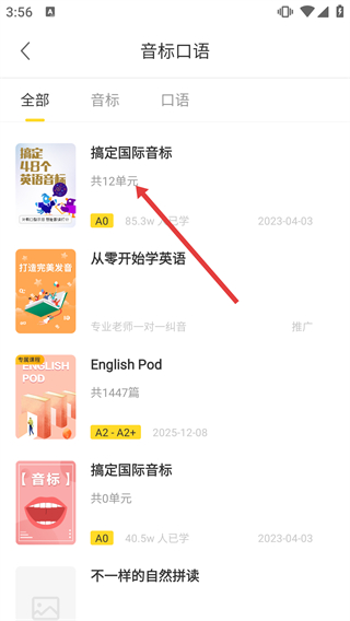 2、在音标口语页面,选择【搞定国际音标】课程,进入英语音标的学习页面。