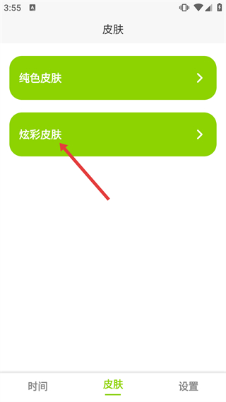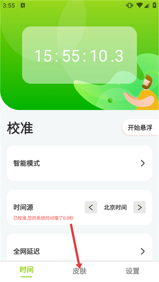 2、在时间校准主界面,点击底部导航栏的【皮肤】选项,跳转至皮肤设置页面。
