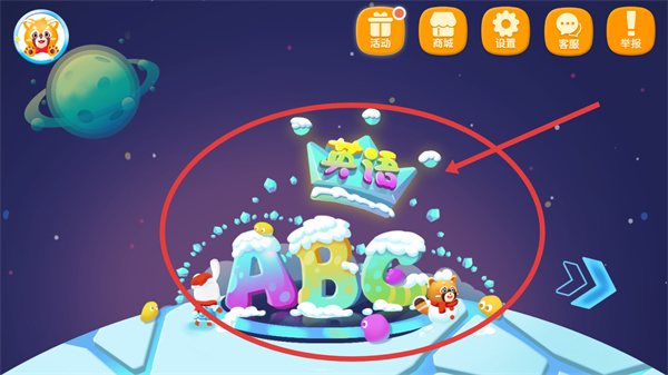 1、进入应用主界面,点击带有“英语ABC”标识的模块,进入低龄儿童英语启蒙的课程选择页面,该模块以趣味动画形式呈现学习内容。