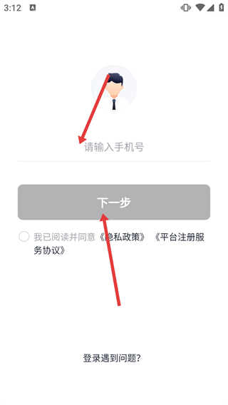 2、进入手机号填写页面,勾选协议选项后填写对应手机号,点击“下一步”按钮继续操作。