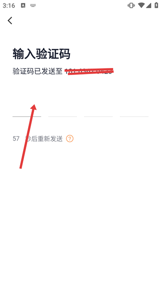 4、进入输入验证码页面,在输入框中填写发送至对应手机号的验证码,完成该步验证操作。