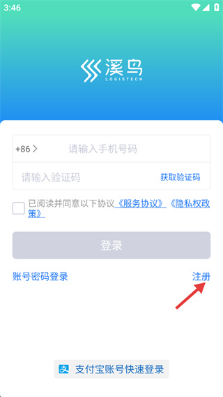 1、在溪鸟的登录页面,找到“注册”按钮并点击,进入快速注册页面,准备填写账号注册所需的各类信息。