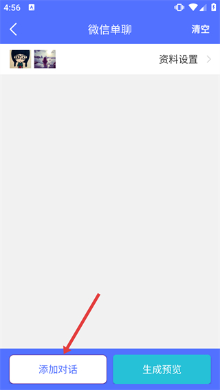 3、在微信单聊页面,点击底部的“添加对话”按钮,进入文本消息的编辑页面。