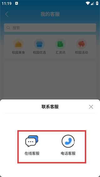 4、在联系客服弹窗中,可选择【在线客服】或【电话客服】,以对应方式与客服沟通问题。