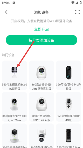 3、在添加设备页面,选择目标设备,进入该设备的配置流程。