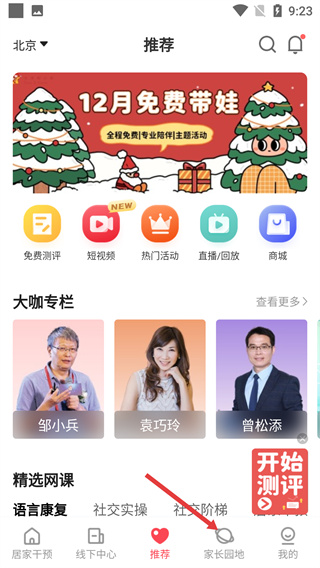 1、进入推荐页面后,点击底部“家长园地”选项,进入家长交流相关的内容板块,可查看资讯及互动内容。