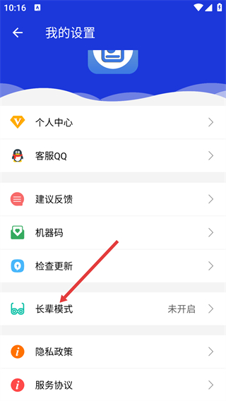 3、在我的设置页面,找到【长辈模式】选项并点击,进入长辈模式的配置页面。