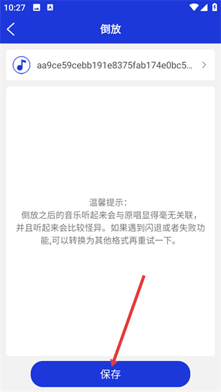 4、完成音频导入后,点击页面底部的【保存】按钮,即可完成音频的倒放处理操作。