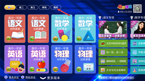 1、点击顶部的【我的】按钮,可进入对应页面,进行账号相关操作、服务购买及客服咨询等事项。