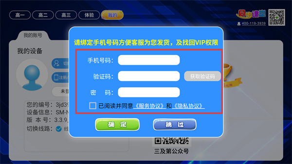 3、在绑定弹窗内,需依次填写【手机号码】、【验证码】、【密码】,同时勾选同意协议的选项,完成信息录入。
